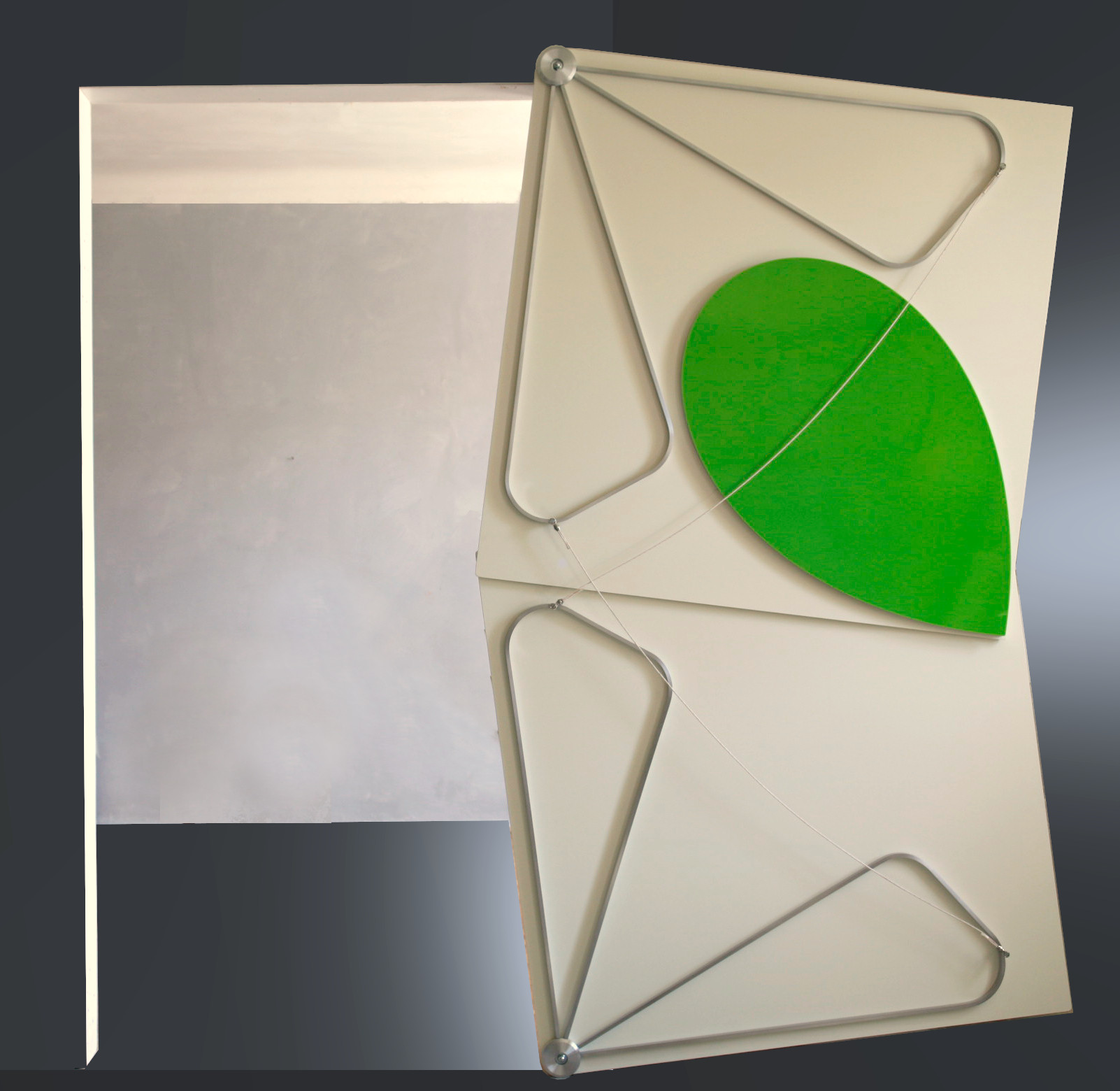 A variation of the Torggler door is the epitrochoidal construction. Here the power is transmitted between the rectangles by a combination of wheel and cycloid. This object is also 100% balanced and smooth-running. The difference to the other objects is that it is a purely gravitational object. Without additional mechanics, it would not work in space or in a horizontal position. With this design, slender objects can be realized.